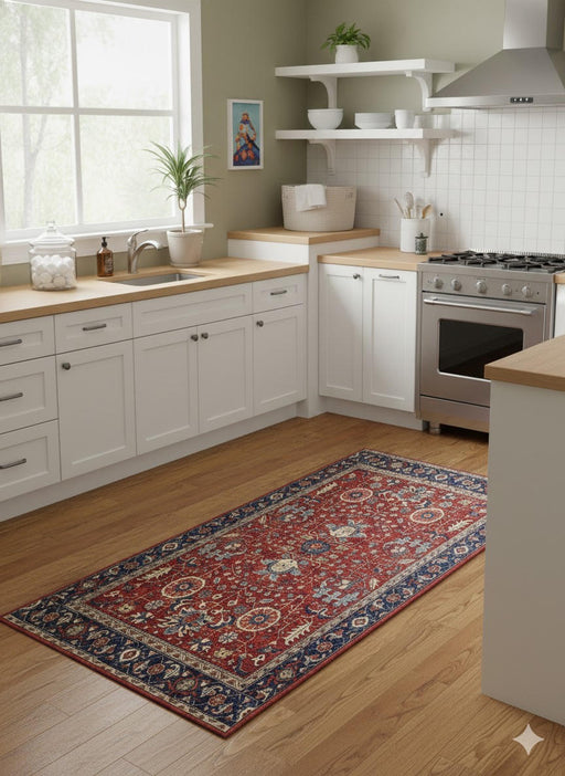 View full details3' x 5' Rectangle Rust Red & Navy Floral Medallion Traditional Area Rug