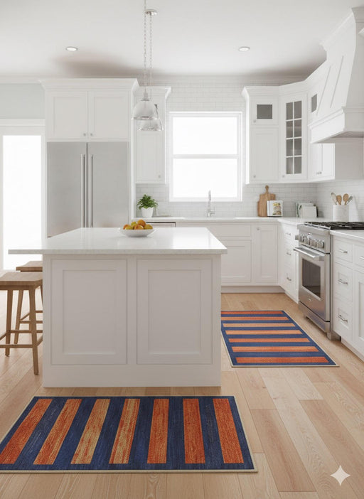 View full details3' × 5' Rectangular Navy Rust Striped Modern Washable Area Rug