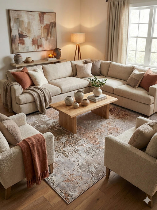 7x9 Sienna Brown Mid-Century Modern Oriental Area Rug Product Details Our Blend – Super-Soft Cloud Flannel Material Power Loomed; Pile Height: 0...