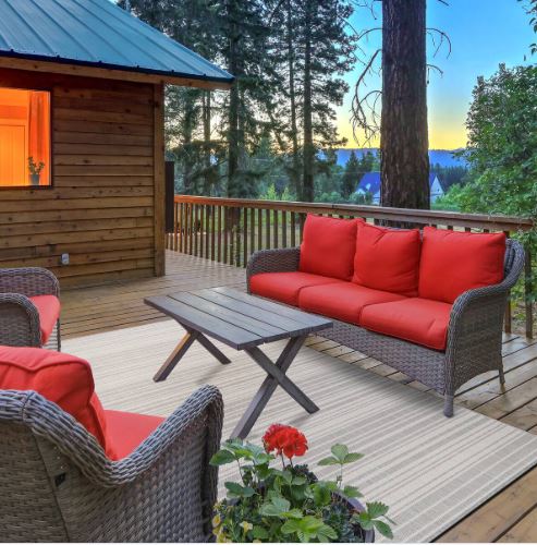 8' x 10' Beige Striped Indoor-Outdoor Rug, Outside Carpet for Patio, Deck, Porch Beverly Rug Product Details Elevate your outdoor living space with...