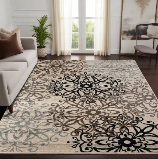 8' Round Superior Leigh Modern Floral Medallion Indoor Area Rug Color: Beige Product Details Superior substance and style blend seamlessly together...