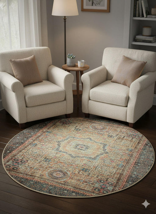 6ft Round Washable Area Rug Q1871