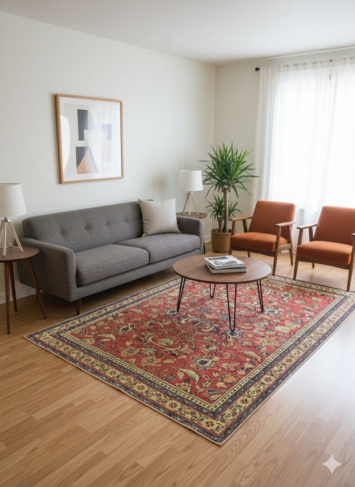 5' x 7' Burgundy Washable Area Rug - 1/6 Thick - Stain & Water-Resistant Non-Slip - Resistant Vintage Charm Area Rugs
