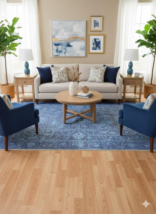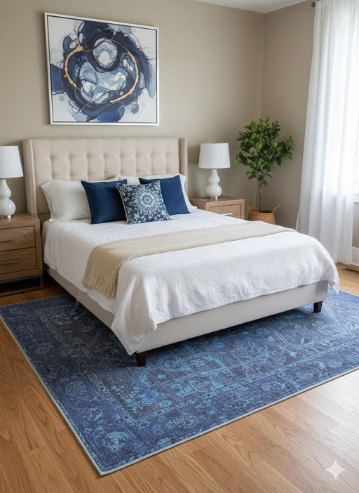 View full details5' x 8' Rectangular Blue & Light Blue Distressed Floral Medallion Vintage Washable Area Rug