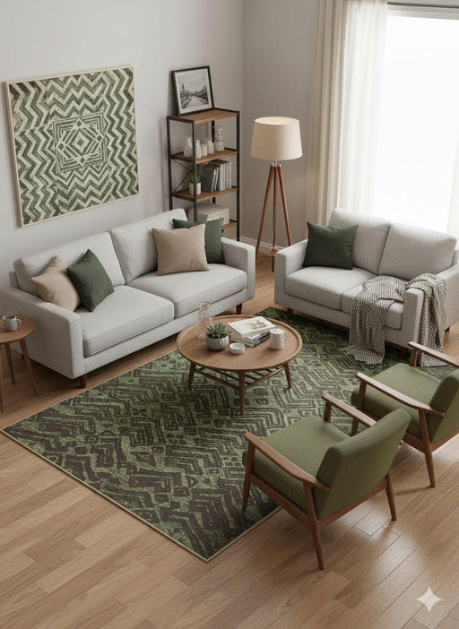View full details5' x 7' Rectangle Olive Green Charcoal Geometric Tribal Washable Area Rug