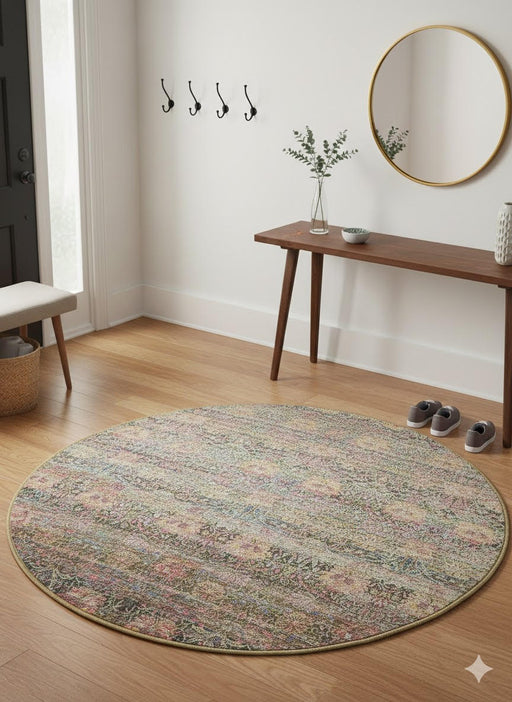 View full details5' Round Multi Color Distressed Floral Bohemian Washable Area Rug